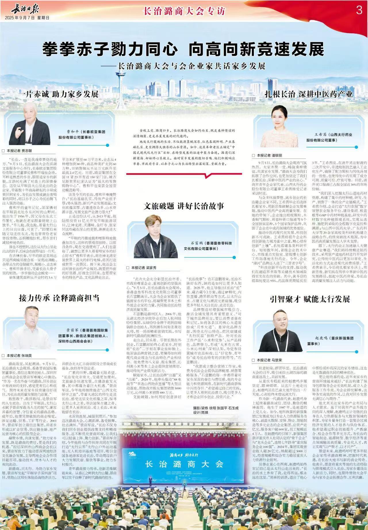 2025 年 9 月 7 日,赵鹿鸣董事长接受了《长治日报》专访,在采访过程中,赵总重点表达了对家乡的情感和参加本次大会的感受,以及他希望结合自身的工作领域,为家乡人才发展提供些助力的想法,对公司来说,这既是家乡媒体对赵总关注家乡发展的认可 91免费网,也让大家更直观地看到他 “念故土,想做事” 的初心, 。